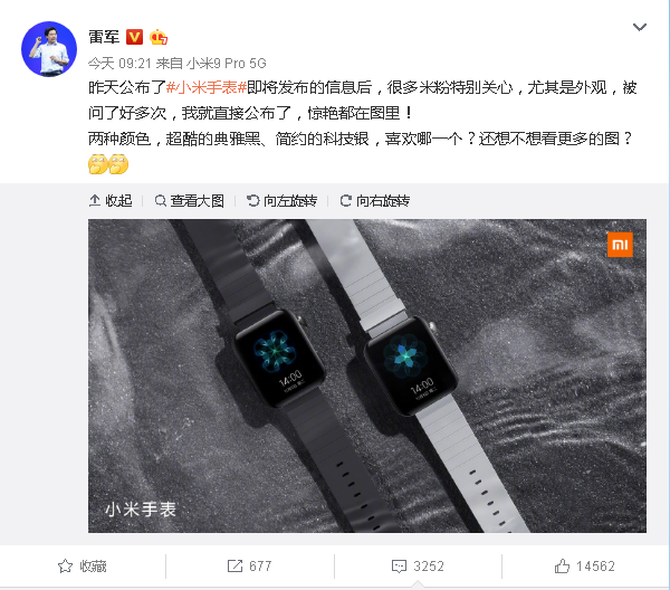 11月5日,小米将正式对外发布全球首款量产一亿像素手机小米CC9 Pro,与之一同发布的还有传闻已久的小米手表。就在刚刚,小米产品首席“泄密者”雷军在微博上曝光了小米手表真机图。从真机图中可以看到小米手表采用方 ...